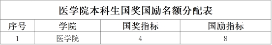 医学院国家奖学金、国家励志奖学金名额分配如下: