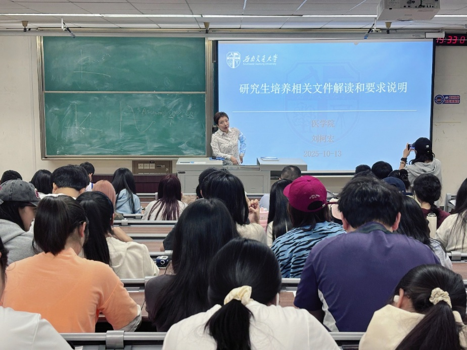 2025年10月13日,19时30分至21时30分,在西南交通大学九里校区4323教室,学院研究生教务刘柯宏老师,为医学院2025级新生带来一场详尽生动的研究生培养文件解读与要求说明讲座。此次讲座旨在帮助同学们更好地理解学校2025级已更新的培养方案以及学位与研究生教育工作的相关政策文件,确保每位同学都能顺利推进自己的学术生涯。