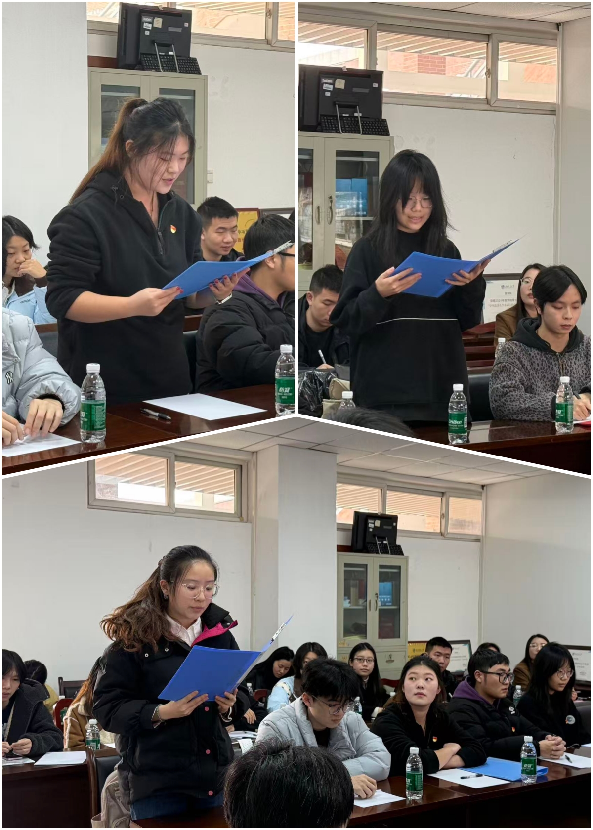 汪铮老师结合诸多历史事件,对学生党员提出两个要求:一是要牢记历史。“前事不忘,后事之师”,以史为鉴。历史是最好的教科书,从党的百年奋斗历程中汲取智慧和力量,了解先辈们为了国家独立、民族解放、人民幸福所做出的巨大牺牲和不懈努力,深刻领悟党的初心使命,传承红色基因,让红色信仰在心中扎根。二是要担当使命。时代赋予了大学生党员新的责任与担当,在实现中华民族伟大复兴的征程中,要勇于接过历史的接力棒,将个人的成长与国家的发展紧密结合起来,在面对困难和挑战时,不退缩、不畏惧,以坚韧不拔的意志和勇往直前的精神,积极投身到社会实践中,在科技创新、乡村振兴、社会服务等领域贡献自己的青春力量,用实际行动诠释新时代大学生党员的使命担当。